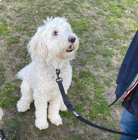 "I got one of your leashes as a gift at my puppy shower a few months ago and can't believe what a difference it has made with puppy training. Unlike with my last dog, no more accidents while rushing outside and trying to get on leash. And, now that that my pup is old enough to go to our local dog park, I love how with just a press of a button, my rambunctious girl is free to play! Fantastic product."
